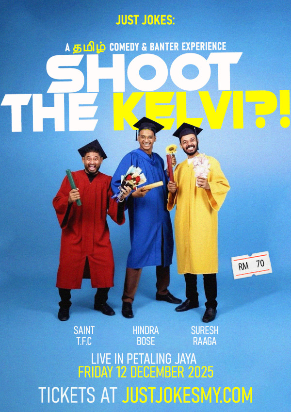 just jokes: SHOOT THE KELVI?! A Special Tamil Comedy Experience with Suresh Raaga & Hindra Bose & Saint T.F.C.! Live in Petaling Jaya! LIMITED SEATS AVAILABLE! [Friday, 12 December 2025]