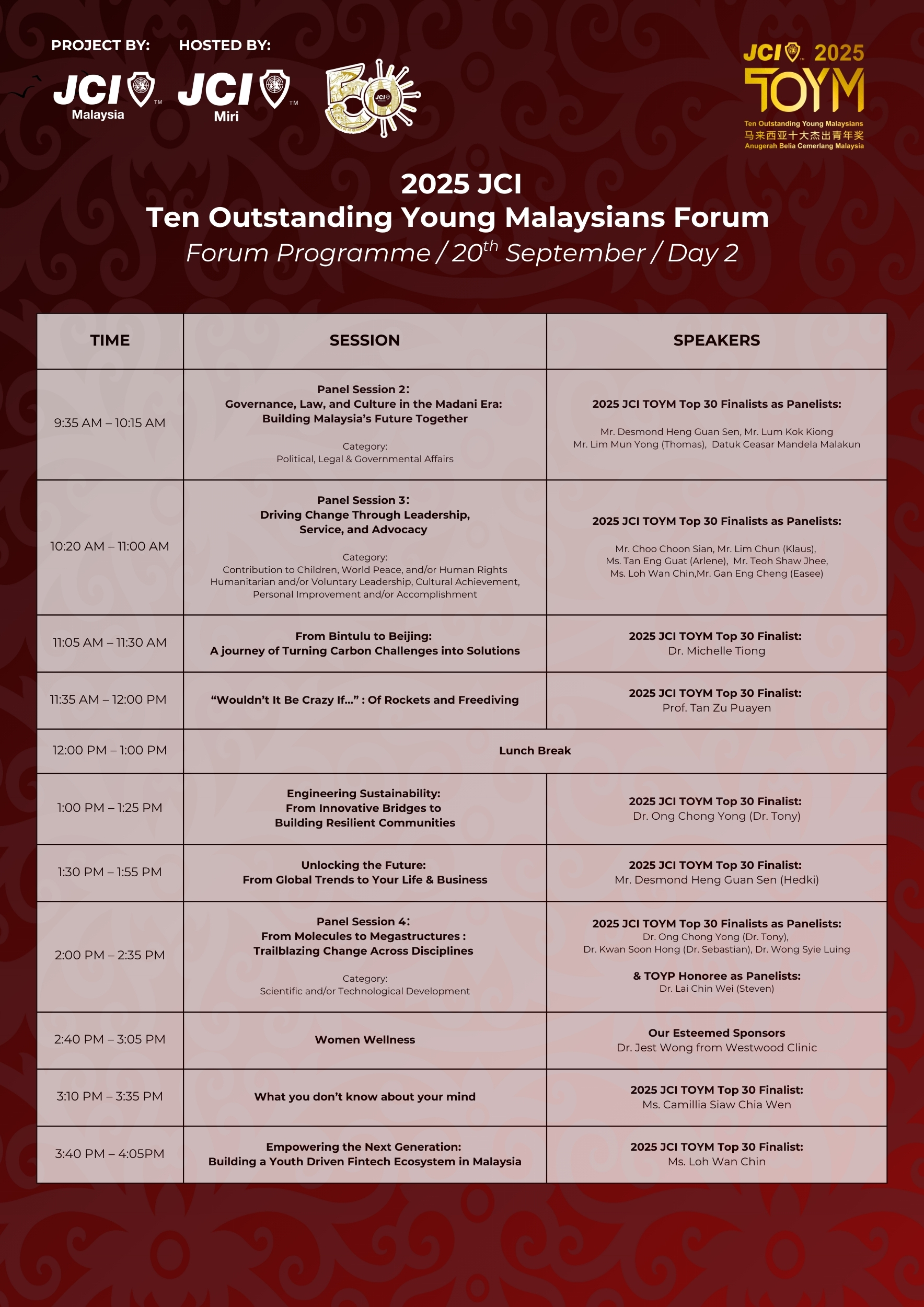 The 2025 JCI Ten Outstanding Young Malaysians Forum is proud to present our very special guest…
