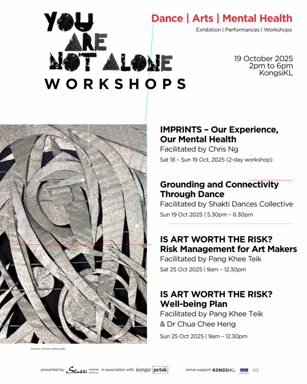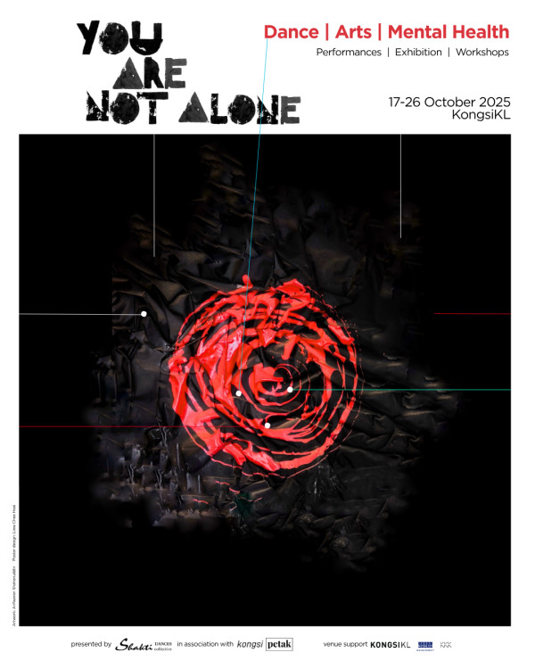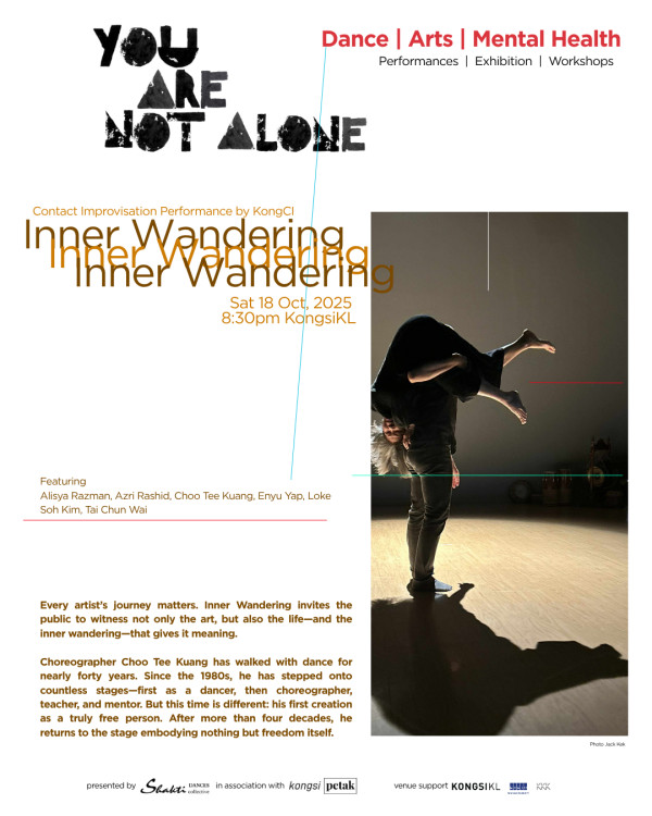 Collective Flow brings artists from across disciplines into a creative exchange of movement, sound, and presence. The exhibition space, featuring artworks by the late dancer Arifwaran Shaharuddin, becomes more than a backdrop—it is a living vessel of encounters. Featuring both renowned and emerging artists, the performance embodies the spirit of sharing: a drop of rain becoming a river as we move together in this collective voyage toward the horizon.