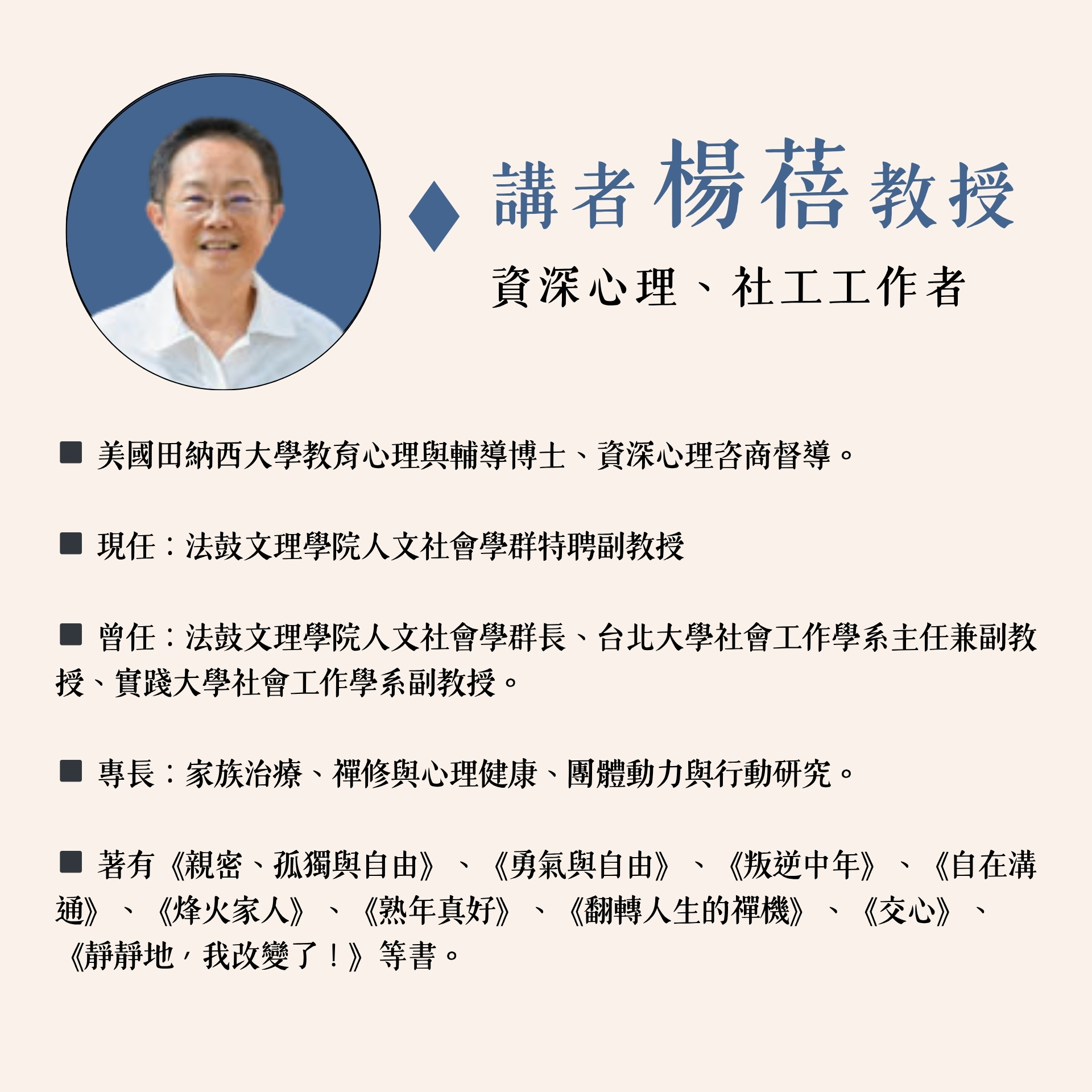 楊蓓《放手,也牽手:成年子女與父母親的關係修煉》线上講座