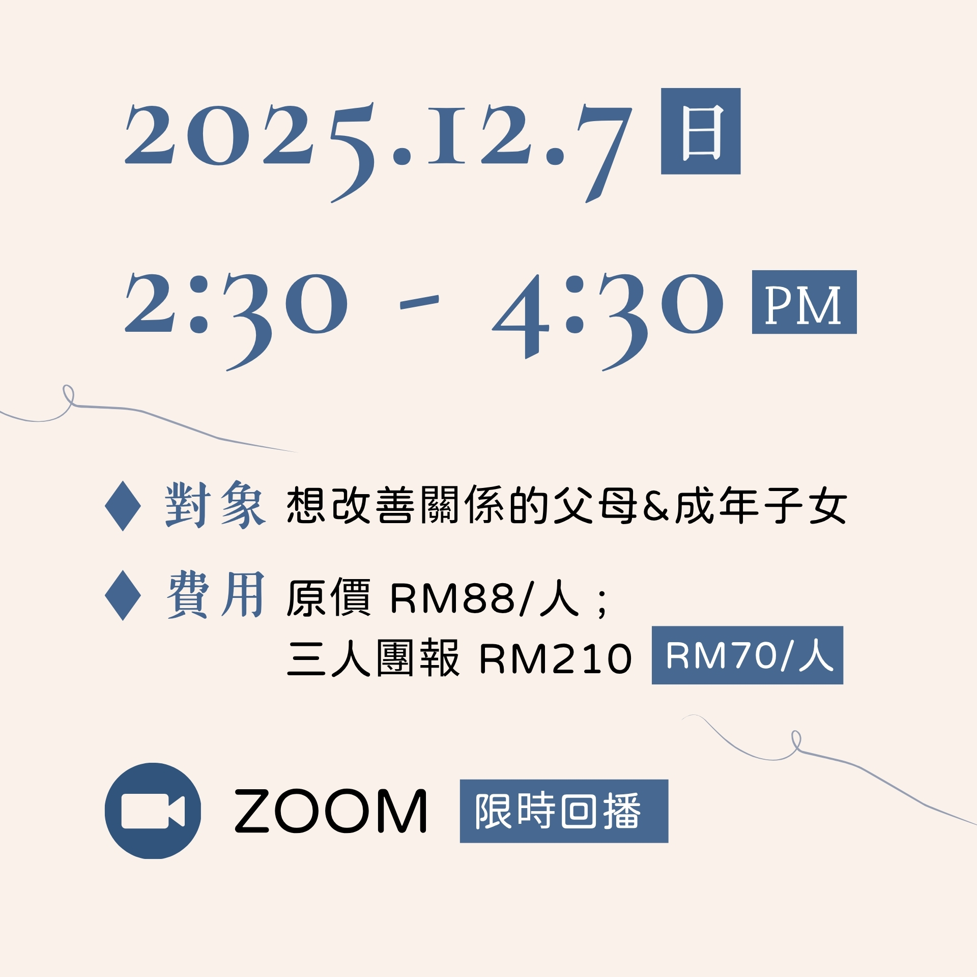 本堂課將帶領大家一起探索:如何在成年後與父母建立健康的界限,同時保持情感的連結;如何在差異與衝突中理解彼此;以及如何在「放手」的自由與「牽手」的親情之間,找到更成熟、更自在的相處方式。