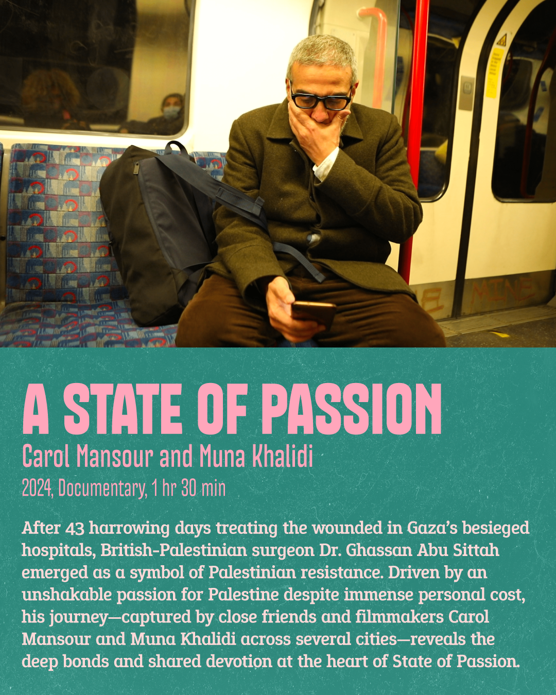 Through the eyes of filmmakers and friends, the story of Dr. Ghassan Abu Sittah unfolds—a surgeon whose 43 harrowing days in Gaza ignite a powerful portrait of love, loss, and unwavering commitment to Palestine.