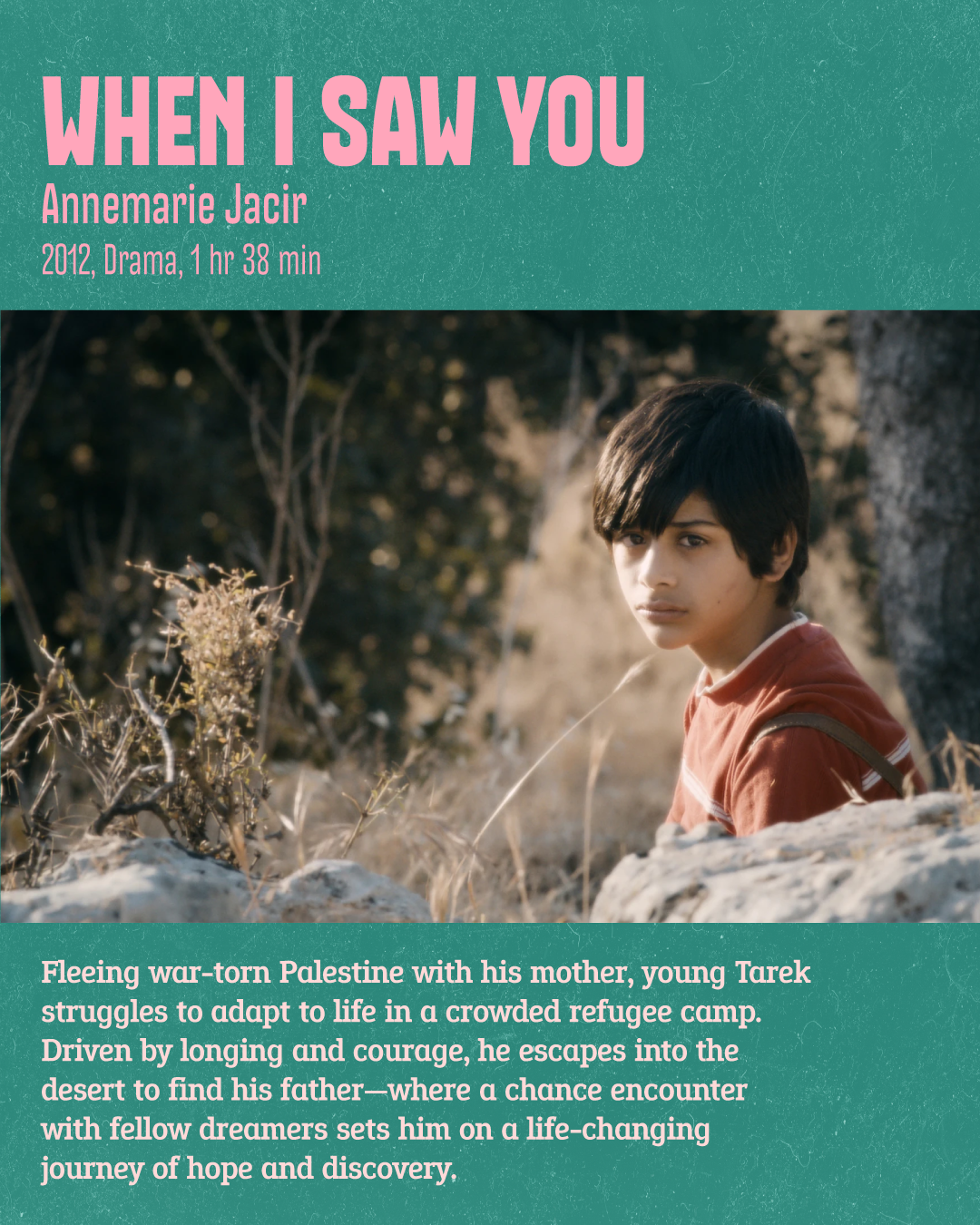 08:30PM When I Saw You (dir. Annemarie Jacir, 2012). Drama. Run time, 1hr 38min