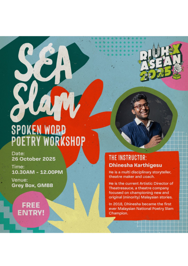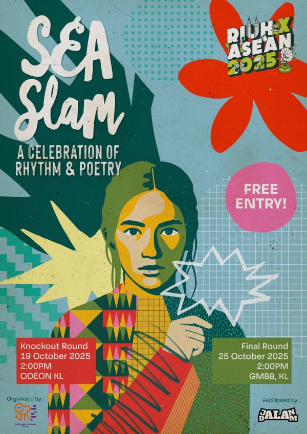 6 finalists will compete on stage, delivering original poetry performance straight from the heart. The champion of SEA Slam walks away with RM5000 whereas the first runner-up and second runner-up wins RM3000 and RM2000 respectively. The final round of SEA Slam is held in GMBB, a creative community space in Bukit Bintang, Kuala Lumpur. Entrance is completely free so bring your family and friends!