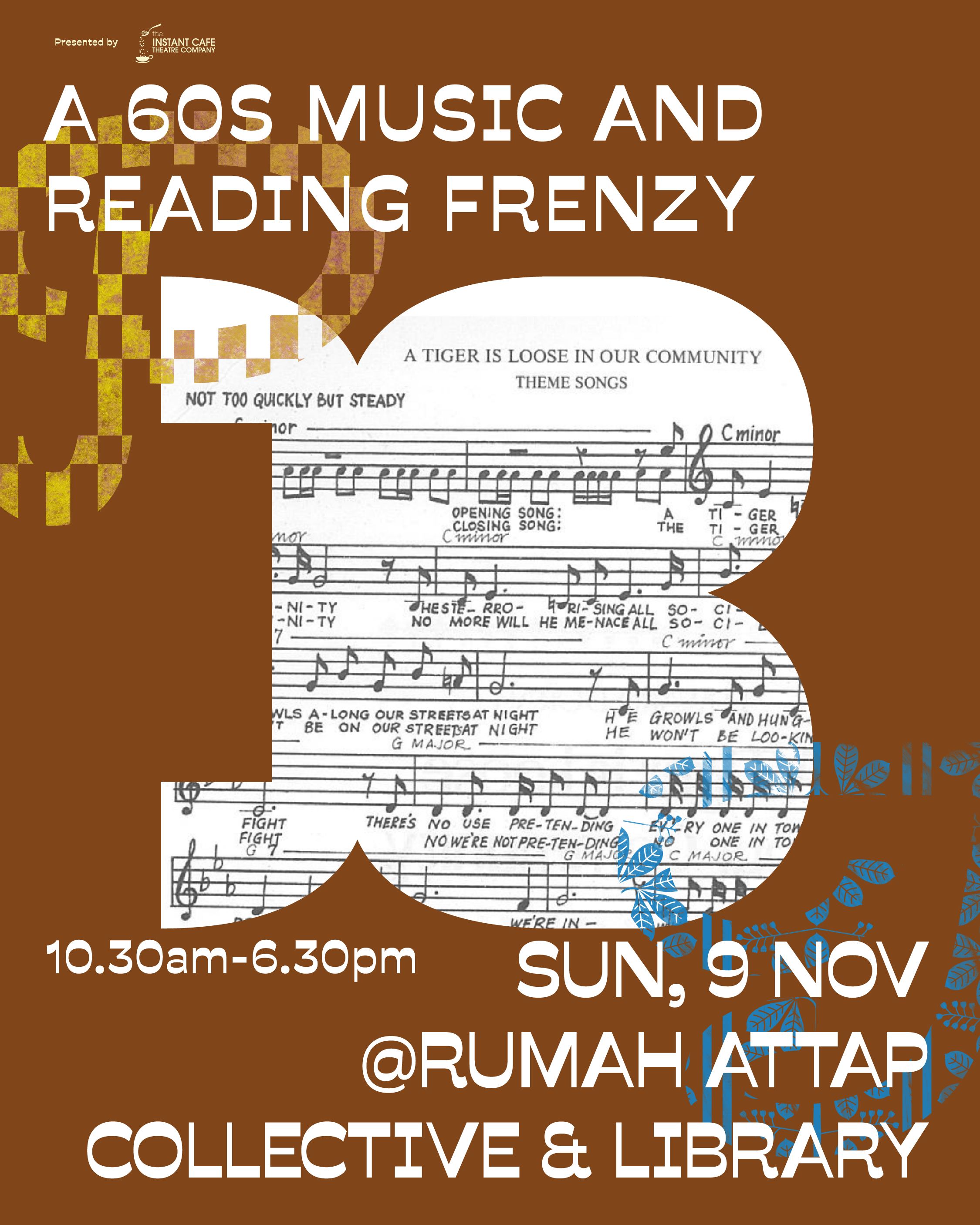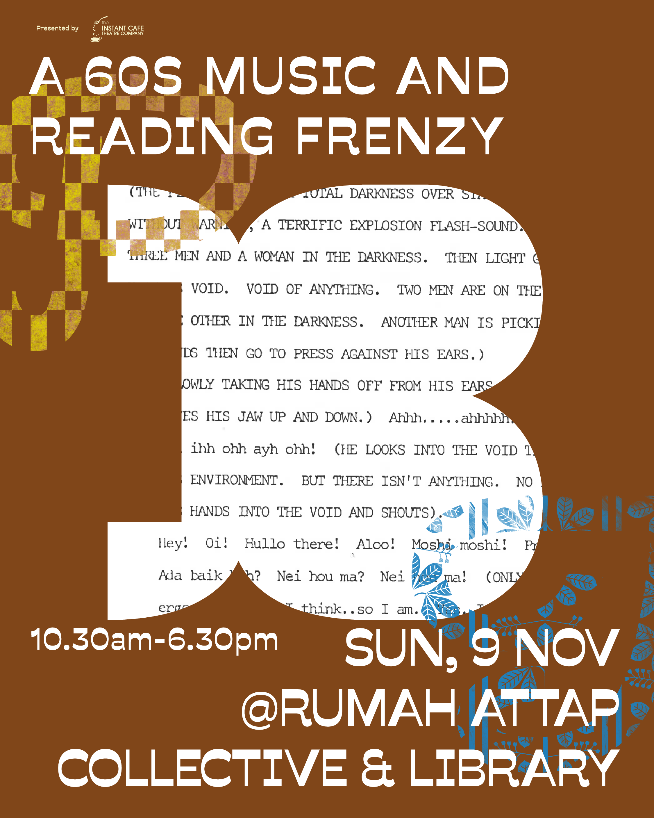 We will be doing a day-long reading of some little known but we think iconic plays from 1960s Malaysia. Everyone is invited! There are no rehearsals, no pressure, just pleasure in hearing words and stories. You can be a reader or listener or both. Titles include A Tiger is Loose in Our Community by Edward Dorrall, Three Men, A Woman and an Explosion by Lee Joo For, Tamu di Bukit Kenny by Usman Awang and maybe more...