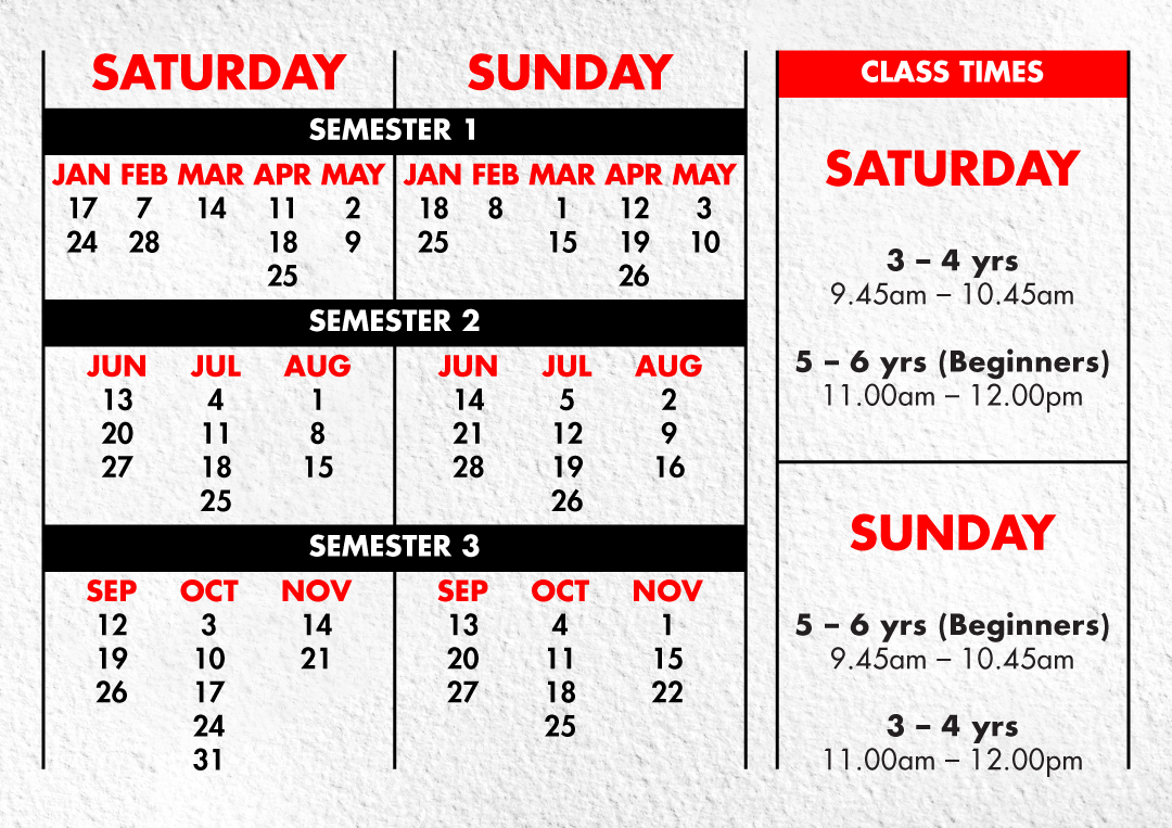 (Students may choose either Saturday or Sunday based on their convenience and must attend on the same day throughout the semester)