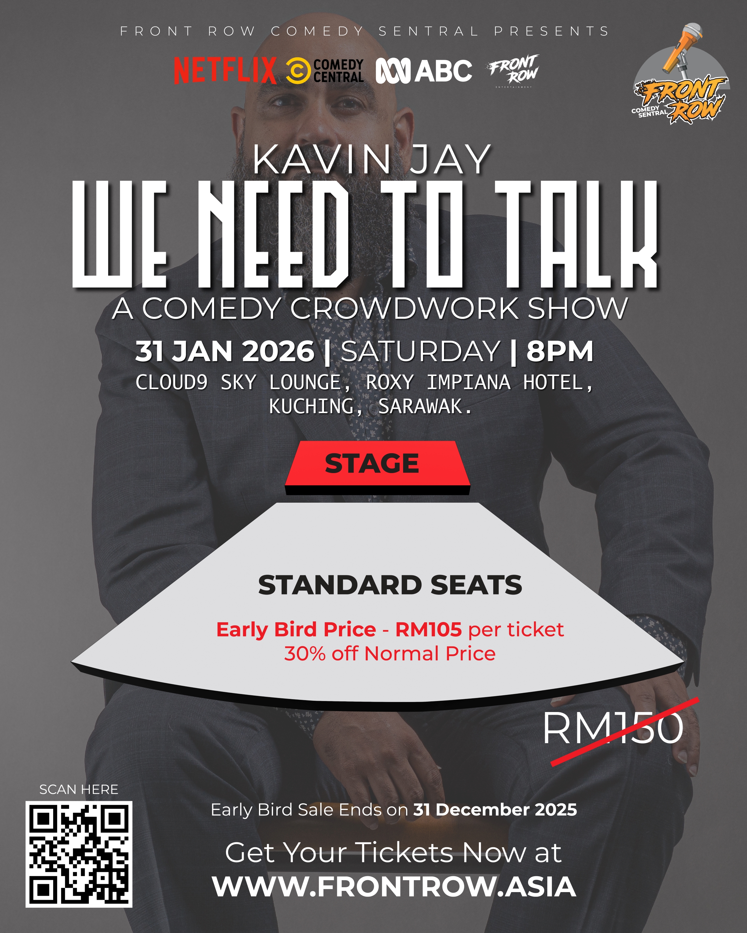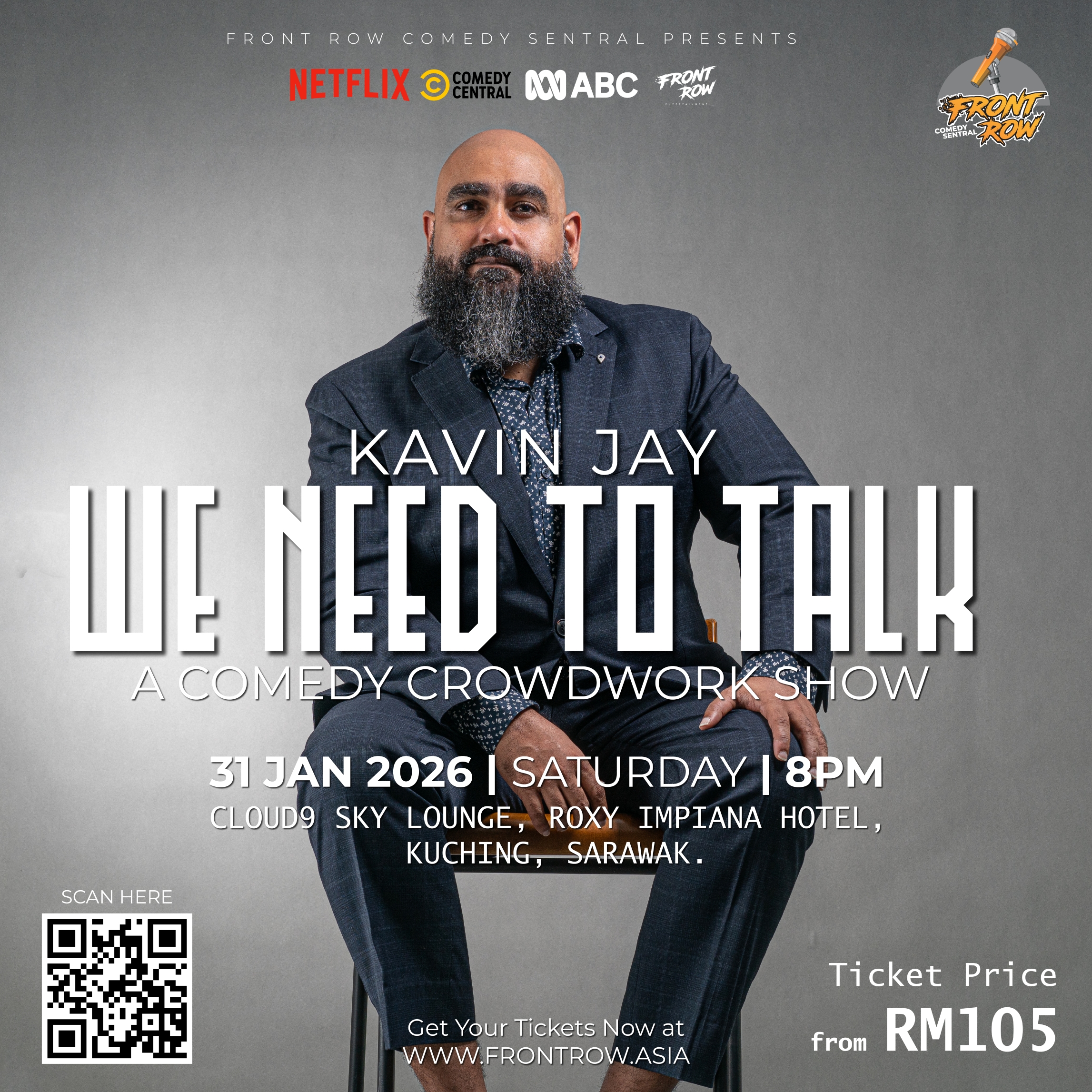 Kavin Jay's critically acclaimed crowdwork comedy show has been wildly popular as seen by sold-out shows in KL and Penang, and Seremban. Brace yourself Sarawak as Front Row Comedy Sentral is bringing We Need To Talk to Kuching!